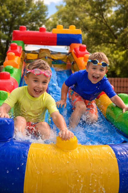 Make every party a splash with the Building Block Backyard Waterslide. This 12 feet tall, compact water slide is built for small kids. Perfect for birthday parties, preschool events, and neighborhood playdates. Book online or call today at 704-220-6542 to reserve fun fast. 🌊🎉